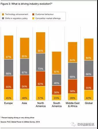 早在2015年,在我們最近一次的全球電力和公用事業(yè)調(diào)查中,只有26%的行業(yè)受訪者認(rèn)為傳統(tǒng)的電力行業(yè)公司商業(yè)模式將在未來很好地為他們服務(wù)。三年后,全球三分之二(65%)的受訪者表示,商業(yè)模式的演變是行業(yè)變革的強大驅(qū)動力,而大多數(shù)(79%)受訪者表示,商業(yè)模式發(fā)生了一定程度的變化。