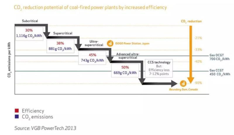 #先進超超臨界煤電廠:效率50%,碳排放強度669克/千瓦時
