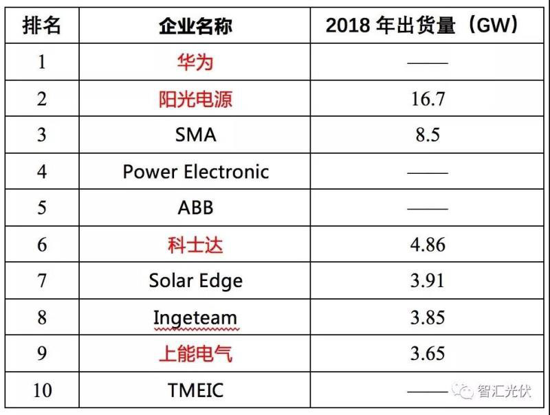 根據(jù)中國光伏行業(yè)的統(tǒng)計(jì),2018年ABB的光伏逆變器出貨量全球排名第五。全球銷量前十的企業(yè)如下表所示。