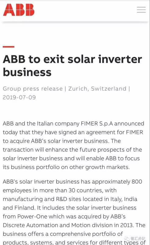 7月9日,曾經(jīng)的光伏逆變器巨頭——瑞士ABB,在其官網(wǎng)正式宣布:退出光伏逆變器業(yè)務(wù)領(lǐng)域!