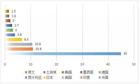 2018年全球光伏新增裝機前十國家(單位:GW)