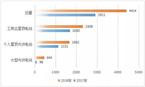 2017-2018年荷蘭光伏累計裝機(分類型)量(單位:MW)