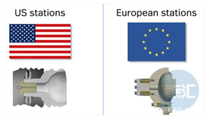 歐洲和美國的接頭之間的區(qū)別。韓國和美國的加氫站有相同的接頭。這是比挪威事故加氫站更老的一代產(chǎn)品。屏幕截圖:Nel演示文稿