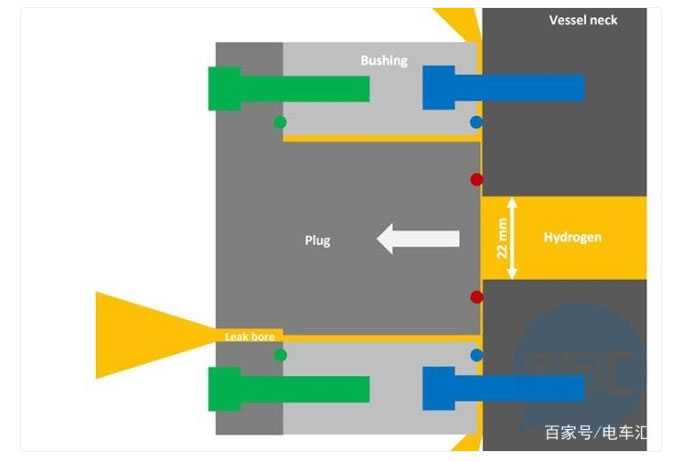 由于錯誤導(dǎo)致的螺栓扭矩,使整個接頭被抬起,并且在標(biāo)藍處的密封件立即斷開。以淺灰色標(biāo)記的襯套也會破裂,氫氣不受控制地泄漏了到空氣當(dāng)中(標(biāo)記為黃色):