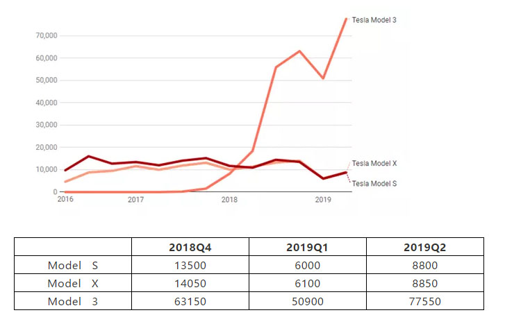 7月2日,特斯拉公布2019年第二季度交付量創(chuàng)下新紀錄。截至6月30日的三個月中,特斯拉在全球范圍內一共交付95,200輛電動車,較第一季度銷量環(huán)比大增51.1%,并打破其2018年第四季度創(chuàng)下的交付紀錄(90,700輛)。