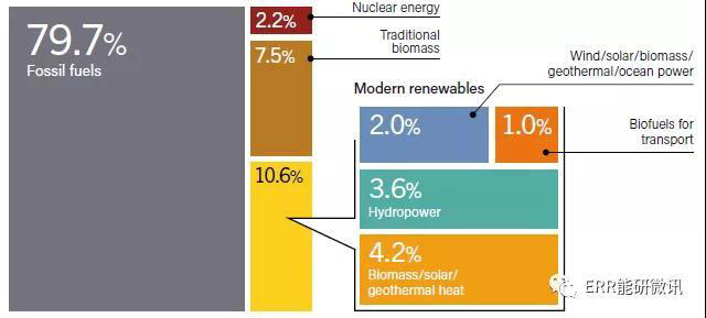 可再生能源的進(jìn)展仍然集中在電力部門(mén),相較之下在供暖、制冷以及運(yùn)輸部門(mén)的增長(zhǎng)要少得多。
