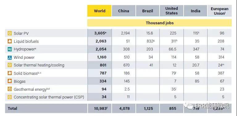 2017~2018年預(yù)估的可再生能源直接和間接就業(yè)機(jī)會(huì)(按國(guó)家/地區(qū)和技術(shù)劃分)