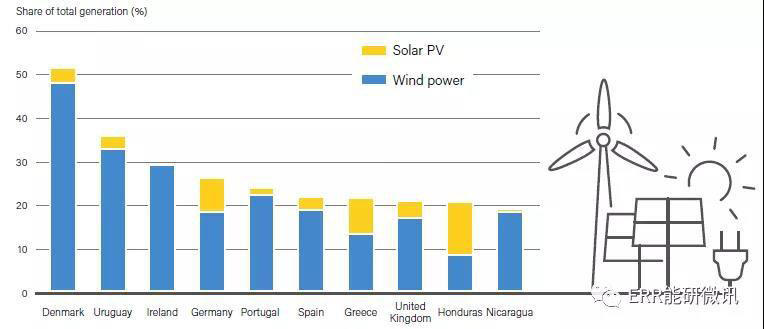2018年間歇性可再生能源發(fā)電占比最高的10個(gè)國(guó)家