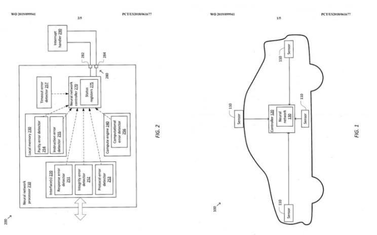 特斯拉在專利申請中表示:“某些類型的錯誤會導(dǎo)致神經(jīng)網(wǎng)絡(luò)進(jìn)入掛起狀態(tài)或者超時狀態(tài),即,神經(jīng)網(wǎng)絡(luò)處理器的一個或多個部分‘凍結(jié)’或是不再活躍,而且此種狀態(tài)超過了預(yù)定時間。當(dāng)出現(xiàn)超時錯誤時,神經(jīng)網(wǎng)絡(luò)處理器會停止提供輸出數(shù)據(jù),或者對輸入的數(shù)據(jù)做出響應(yīng)。程序錯誤和/或數(shù)據(jù)錯誤等其他種類的錯誤,可能會導(dǎo)致神經(jīng)網(wǎng)絡(luò)處理器生成的輸出數(shù)據(jù)發(fā)生損壞。當(dāng)出現(xiàn)此種錯誤時,神經(jīng)網(wǎng)絡(luò)處理器會繼續(xù)提供輸出數(shù)據(jù),但是結(jié)果可能是不準(zhǔn)確、無意義,甚至無用的?!?