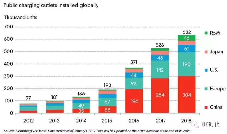 充電設(shè)施仍需擴充。2018年全球安裝了63.2萬個公共樁,其中中國建了30.4萬個,歐洲19.0萬個,美國6.1萬個。但是還需要更多的公共樁來滿足不斷增加的運營車輛的需求。