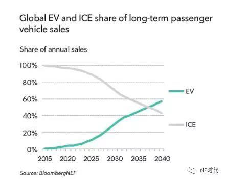 到2040年電動汽車占去整體銷量的57%,并且在全球運營車中占去30%的比重。