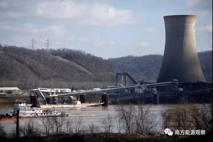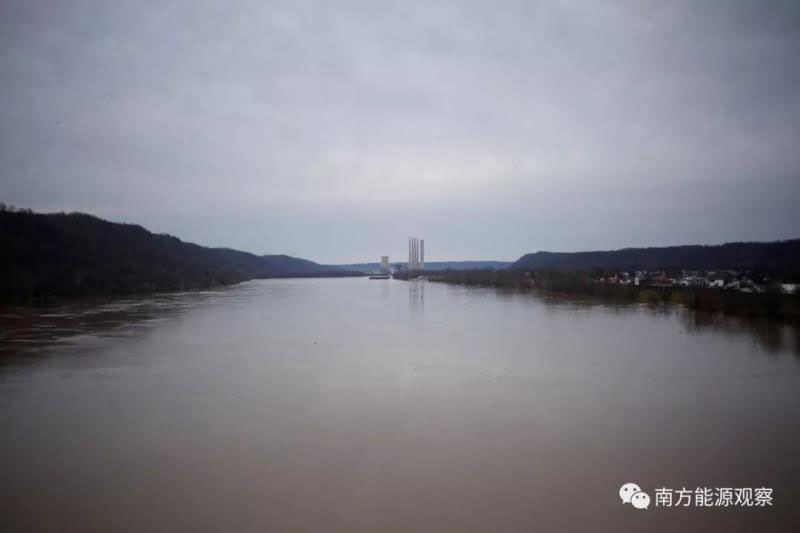 在俄亥俄州亞當(dāng)斯縣,從俄亥俄河順流而下的駁船不再向這里的兩座已經(jīng)屹立了幾十年的發(fā)電廠輸送煤炭。這兩座燃煤電廠就像兩個(gè)哨崗一樣,若隱若現(xiàn)。