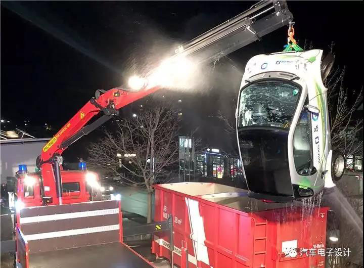 Daimler:有2臺Smart事故車,德國消防都有了經(jīng)驗(yàn)準(zhǔn)備了大水箱把車子浸入了,這車小而且比較輕直接吊起來丟水里面
