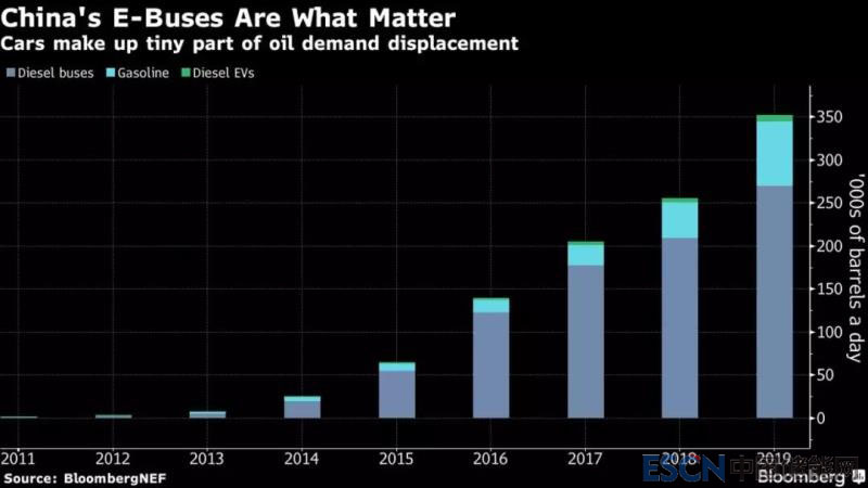 具體而言,公路上1000輛電動(dòng)公交車(chē)每天可以替代500桶燃油;相比之下,1000輛電動(dòng)汽車(chē)僅替代15桶燃油/天。根據(jù)彭博新能源財(cái)經(jīng)最新報(bào)告估計(jì),截至2019年底,電動(dòng)公交車(chē)每天將可以替代27萬(wàn)桶燃油(大部分是在中國(guó)),這是全球所有電動(dòng)乘用車(chē)(特斯拉擁占12%)所能替代燃油的三倍。