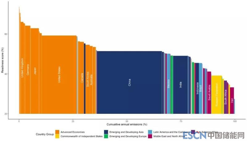 報(bào)告發(fā)現(xiàn),小型經(jīng)濟(jì)體在就緒度方面的得分一般更高,英國(guó)是在這項(xiàng)次級(jí)指數(shù)上排名前十的唯一一個(gè)七國(guó)集團(tuán)成員國(guó)。除了新加坡外,排名前十的經(jīng)濟(jì)體全部位于西歐。若要建立面向未來(lái)的全球能源體系,最大的挑戰(zhàn)在于世界大型經(jīng)濟(jì)體對(duì)此準(zhǔn)備不充分:比如,在就緒度方面排名前十的國(guó)家,其年度排放量?jī)H占全球排放總量的2.6%。