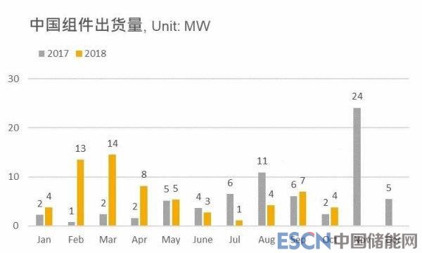 根據(jù)PVInfolink海關(guān)數(shù)據(jù)數(shù)據(jù)庫(kù)顯示,中國(guó)組件出貨至孟加拉的需求量不大,2017全年的組件出貨量?jī)H71MW。2018年1-10月出貨量為64MW,和去年同期相比成長(zhǎng)52%,雖可預(yù)期2018年市場(chǎng)需求相對(duì)2017年較高。但對(duì)于要滿足每年約471MW的需求仍是遠(yuǎn)遠(yuǎn)不及的。