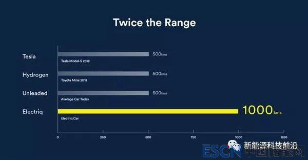 與電動(dòng)巴士的比較顯示,有普通電池驅(qū)動(dòng)的巴士可提供250公里的行駛里程,需要300分鐘的充電時(shí)間,而由Electriq~Fuel驅(qū)動(dòng)的巴士可提供1000公里的行駛里程,并可在5分鐘內(nèi)完成充能。