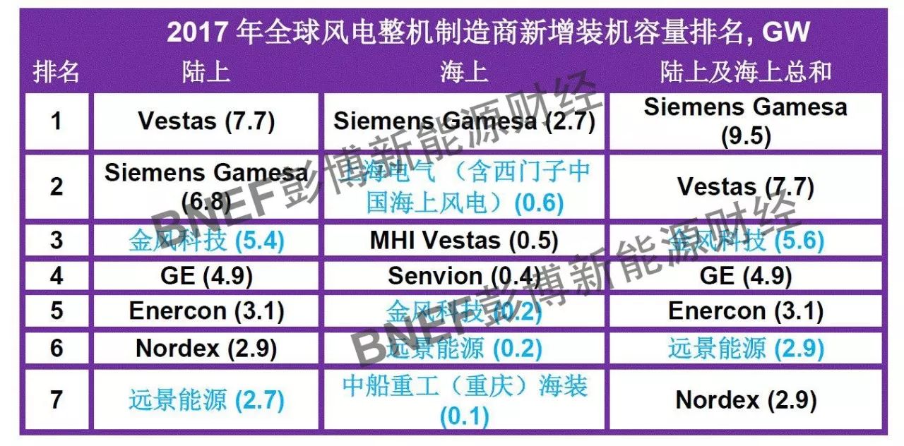 在數(shù)據(jù)統(tǒng)計過程中,彭博新能源財經(jīng)向整機(jī)制造商提供其2017年完成吊裝的項目清單及確認(rèn)的吊裝容量,整機(jī)制造商均有權(quán)檢驗,確認(rèn)或增補(bǔ)各自項目清單。彭博新能源財經(jīng)針對整機(jī)制造商提交的項目清單逐個比對確認(rèn)。與彭博新能源財經(jīng)掌握的信息不符的吊裝容量均已剔除;已計入2017年之前發(fā)布的裝機(jī)容量統(tǒng)計的均不重復(fù)統(tǒng)計。各別整機(jī)制造商或在截止日后更新數(shù)據(jù),但數(shù)據(jù)未經(jīng)確認(rèn),不做排名依據(jù)。