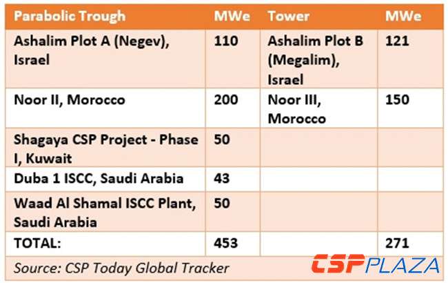 圖:中東地區(qū)塔式與槽式電站裝機(jī)情況