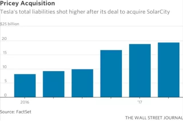 去年秋季收購SolarCity之后,第四季度特斯拉負(fù)債同比增長了60%多。截至今年二季度末,特斯拉的總負(fù)債已經(jīng)接近200億美元,二季度凈虧損3.36億美元,較上年同期擴(kuò)大14.7%。