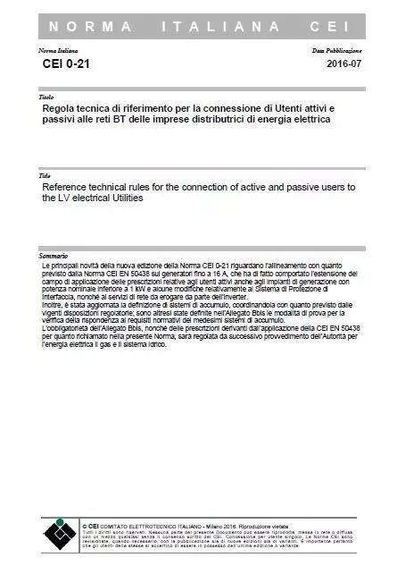 2016年8月,意大利電氣技術委員會發(fā)布了新版的低壓并網標準CEI 0-21:2016-07,將于今年7月取代舊版標準CEI 0-21:2014-09+V1:2014-12。新版的低壓并網標準CEI 0-21:2016-07提高了新能源發(fā)電系統(tǒng)對電網支撐的功能要求,改變了舊標準以3kW和6kW的系統(tǒng)額定發(fā)電容量作為光伏逆變器電網支撐功能要求的功率分段條件,以11.08kW的系統(tǒng)發(fā)電容量作為新的電網支撐功能分界點,不再接受功率因數不可調整的發(fā)電設備。并增加了對儲能系統(tǒng)的測試要求條款。