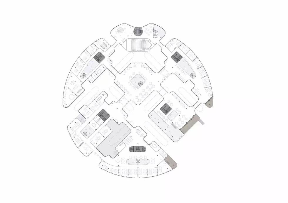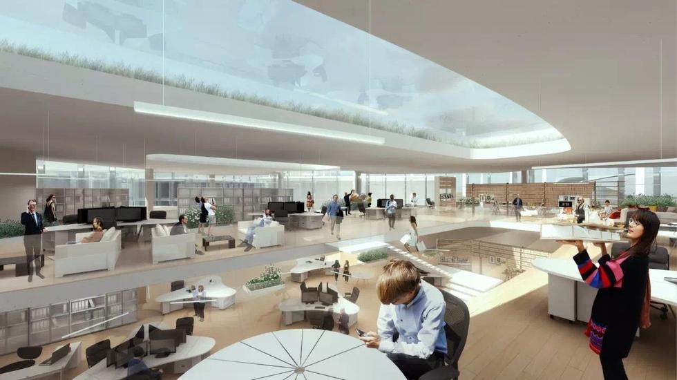 整個(gè)辦公區(qū)分成幾個(gè)組團(tuán),其中設(shè)有多個(gè)天井和中庭,通過步道將室內(nèi)外貫穿,有機(jī)結(jié)合、形成一個(gè)整體。自然光和馬雷島獨(dú)特的環(huán)境、園區(qū)內(nèi)設(shè)計(jì)的人工景觀,三者融合為一,被帶入員工的室內(nèi)工作環(huán)境中。