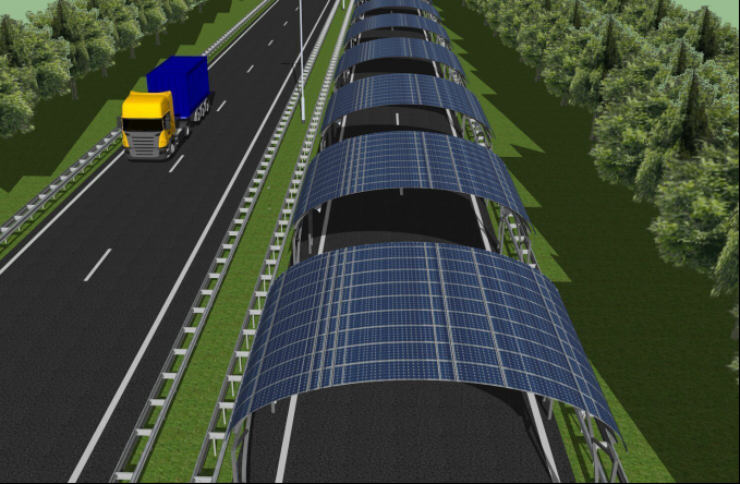 架空式太陽能光伏公路充分利用公路路面上層立體空間,在公路行車路面的上方建設適當高度的太陽能光伏發(fā)電廊道,在產(chǎn)生電能的同時集公路線形誘導、輔助照明、智能監(jiān)控等功能于一體,是新型的公路交通基礎設施。
