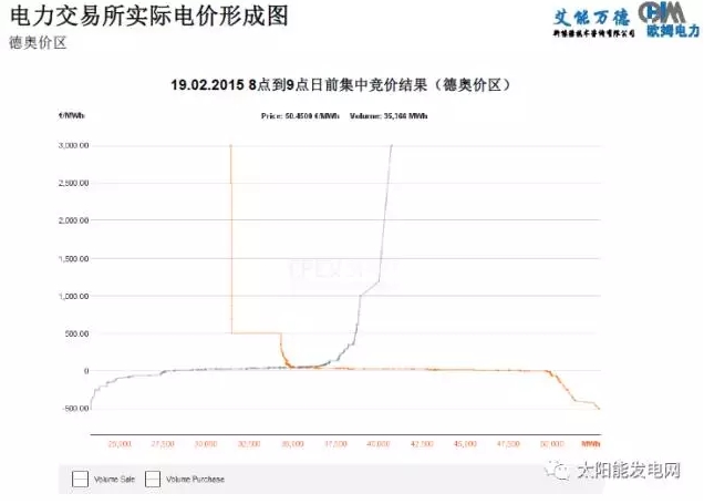 從我們拿到的一些實時數(shù)據(jù)來看,以其中的一些交易方法,需求和發(fā)電量最后會結(jié)合成一個點,也可以說是出清的點,報價在此以下的就可以出清,在此以上的就賣不出去了,這是歐美十幾年來、二十年來,一種成熟的、理想的電力市場交易狀態(tài)。當(dāng)然,德國、法國、瑞士每個地方都不同,但如果熟悉市場的人,熟悉市場交易的交易員,就可以了解競價參與者的機組有多大,以及競價的習(xí)慣,可以猜測出來。