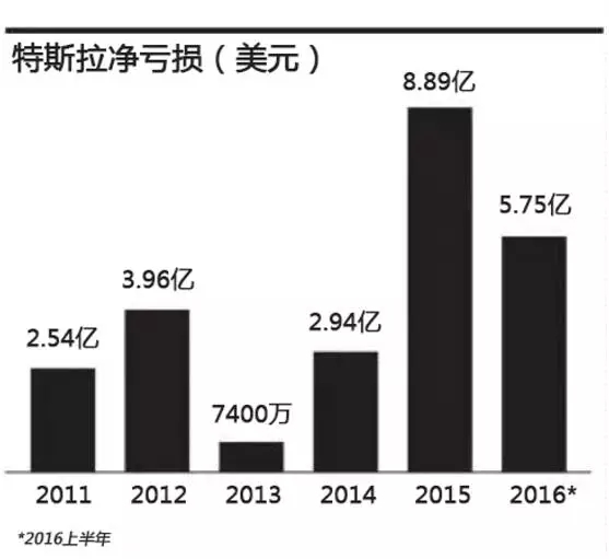 然而,糟糕的是,特斯拉公司的資金也談不上穩(wěn)定。特斯拉在過去五年損失25億美元,比SolarCity還多。自2013年,特斯拉就沒有季度利潤了。今年夏天,馬斯克懇求公司員工盡量削減成本。因為隨著Model 3的完成和內(nèi)華達的超級工廠Gigafactory的建設(shè),特斯拉即將開啟新一輪燒錢模式。