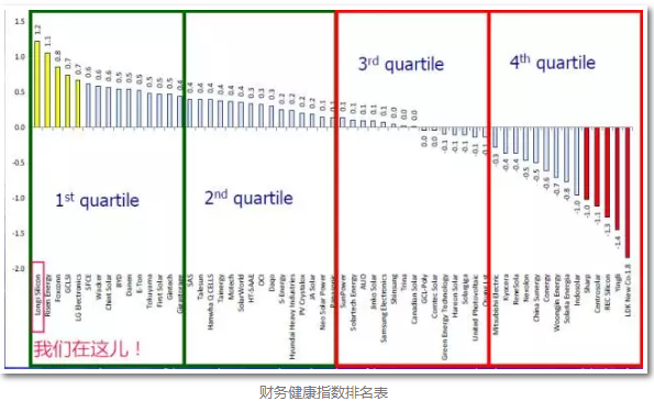 綜合評(píng)分顯示,樂(lè)葉光伏母公司隆基股份在59家企業(yè)排名中獲得了第9名,相比上一季度上升了3位,表現(xiàn)成績(jī)優(yōu)秀,第一梯隊(duì)的地位依舊堅(jiān)實(shí)穩(wěn)固。在單項(xiàng)指標(biāo)評(píng)分中,隆基股份的財(cái)務(wù)健康指數(shù)驚艷“領(lǐng)跑”所有參賽企業(yè),輕松斬獲冠軍。同屬“優(yōu)秀選手”的還有Risen Energy、Foxconn、GCLSI、LG Electronics等。