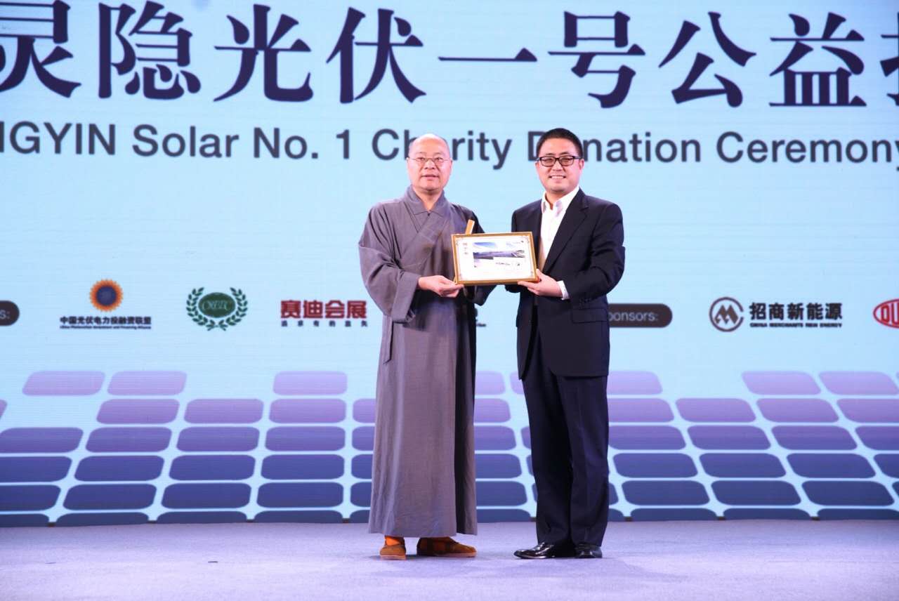 中國(guó)儲(chǔ)能網(wǎng)訊:2016年8月5日,全球首個(gè)百萬(wàn)瓦級(jí)大型佛教公益電站“靈隱光伏一號(hào)”捐贈(zèng)儀式在杭州舉行。招商新能源集團(tuán)首席執(zhí)行官李原、靈隱寺方丈光泉法師和捐贈(zèng)代表一同出席儀式。
