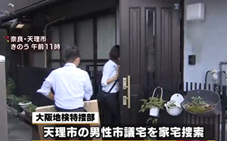 8月3日上午,大阪地方檢察廳特別搜查部搜查奈良縣天理市一男性的住宅。