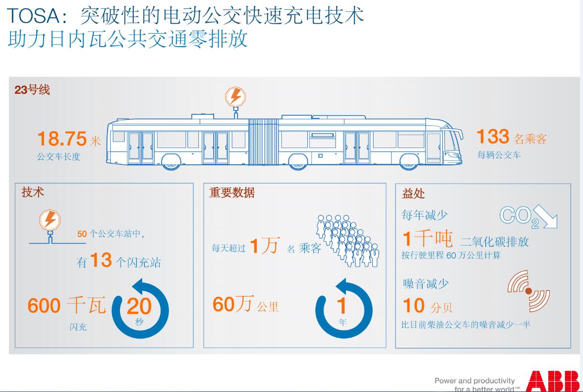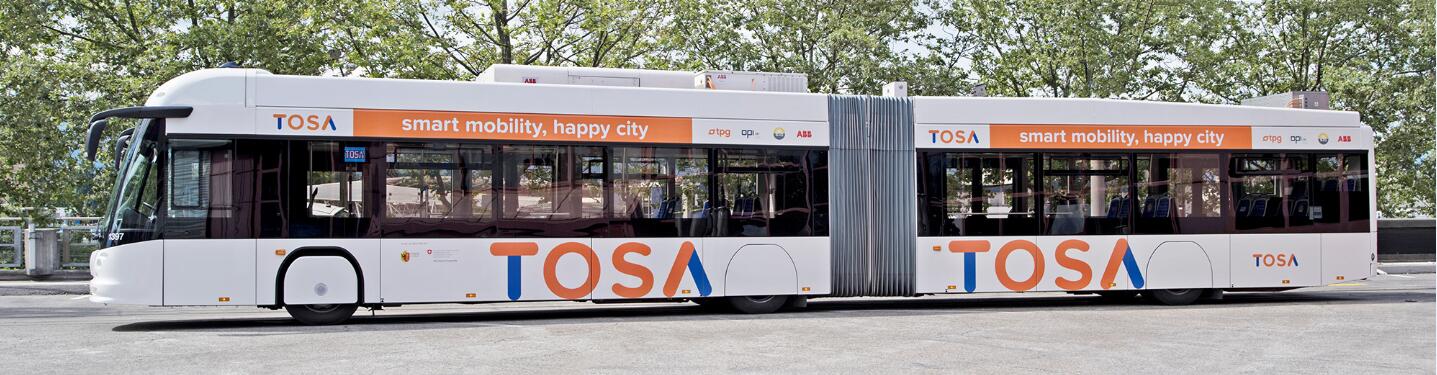 中國儲能網(wǎng)訊:ABB近日與日內瓦公共交通局(TPG)和瑞士客車制造商HESS簽訂合同,為12輛TOSA(新型無軌電動公交系統(tǒng))全電動公交車提供閃充及車載電動汽車技術。這批電動公交車將服務往返日內瓦機場和城郊地區(qū)的23號線,與傳統(tǒng)燃油公交車相比,每年可減少1000 噸二氧化碳排放。