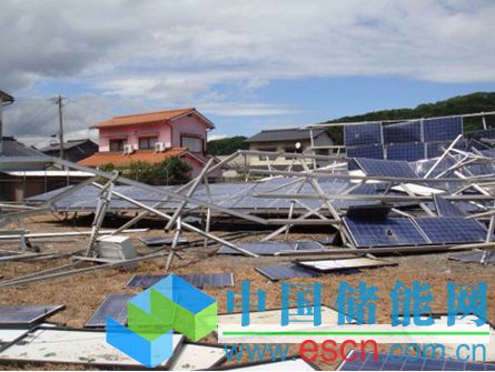 據(jù)稱尤其是500kW~2MW以下的設備,有很多大量電池板脫落和飛散的損壞。并得知,雖然2MW以上的設備也有受損案例報告,但沒有出現(xiàn)因結(jié)構強度原因的重大損壞。