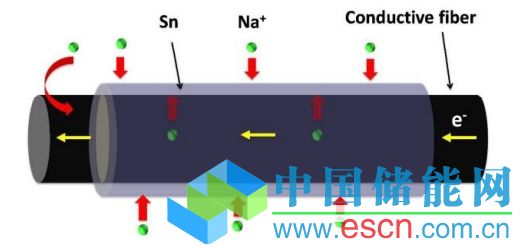 他們使用黃松木薄片進(jìn)行測(cè)試。先用奈米碳管覆蓋在薄片之上以改善其傳導(dǎo)性,接著再在每塊薄片上加上一層錫;完成之后,將薄片放入含有鈉離子的電解液中,進(jìn)行400次循環(huán)的充放電??刂平M則是以銅薄片制成的類似電池。