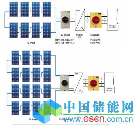 近日,IMO也積極研發(fā)一種有直流/交流雙隔離消防用緊急制動聯(lián)動開關,可以切斷直流1000V,直流電流從12A的民用光伏屋頂系統(tǒng)到450A的電站級系統(tǒng)。這種直流開關通過單獨的線纜與交流開關相連,當交流電斷開時,直流側的繼電器會因交流電信號丟失,而自動斷開直流側電路,起到直流/交流電路雙隔離的作用。