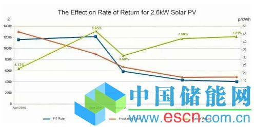 Green Business Watch的編輯Alastair Kay評論道:“我們希望將度電補貼費率、成本降低、電價增長等多重因素對太陽能系統(tǒng)投資的影響進行比較。從比較結(jié)果可以很清楚地看出現(xiàn)今家用太陽能系統(tǒng)能提供比2010年剛推出度電補貼的時候更誘人的回報率?!?