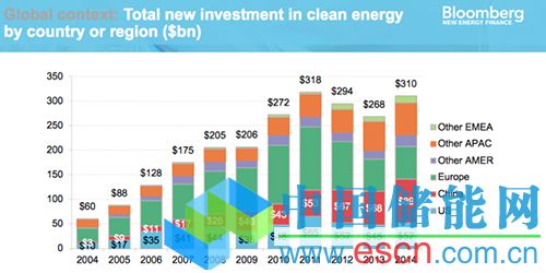 2014年,清潔能源投資最高的國家是中國,累計投資達到890億美元(約合人民幣5566億元);2013年,中國投資清潔能源累計達到680億美元(約合人民幣4253億元)。
