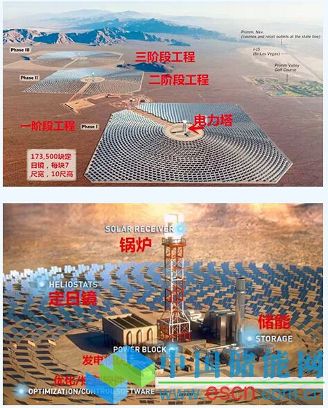 由美國BrightSource能源公司、NRG能源公司和Google共同參與投資的世界上最大的太陽熱電系統(tǒng)“艾文帕太陽能發(fā)電系統(tǒng)”(IvanpahSolarElectricGeneratingSystem,ISEGS)位于美國拉斯維加斯西南部40英里的莫哈韋沙漠,當(dāng)?shù)厝耆照粘浞?,距離輸電線路距離較近。ISEGS由3座太陽熱發(fā)電廠組成,它的成型和運作被視為提供了能和化石燃料競爭的新能源工程樣本,是在下一代科技、創(chuàng)新、政府、企業(yè)合作之下共同形成的,可以應(yīng)對氣候變化的可持續(xù)解決方案。