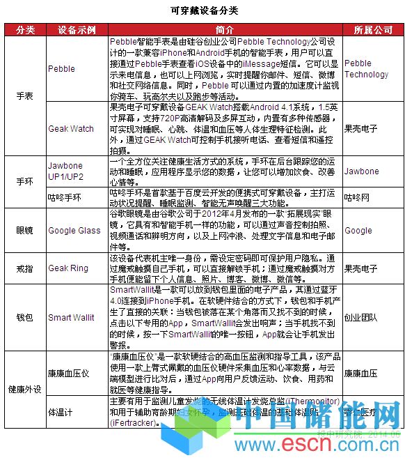 隨著Google Glass(谷歌 眼鏡)、Pebble智能手表、Jawbone Up(卓棒智能手環(huán))等一系列明星產(chǎn)品的橫空出世,可穿戴設(shè)備成為消費(fèi)電子行業(yè)的新寵兒。從全球市場(chǎng)看,谷歌、蘋果、三星等各大科技廠商均提前布局可穿戴設(shè)備領(lǐng)域,中國國內(nèi)也由百度、盛大等公司牽頭,掀起一場(chǎng)可穿戴革命。目前,可穿戴設(shè)備主要有手表、手環(huán)、眼鏡、戒指、錢包、健康外設(shè)等多種類型。