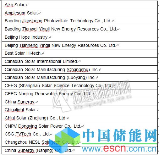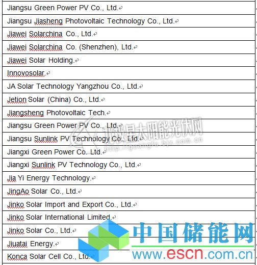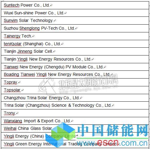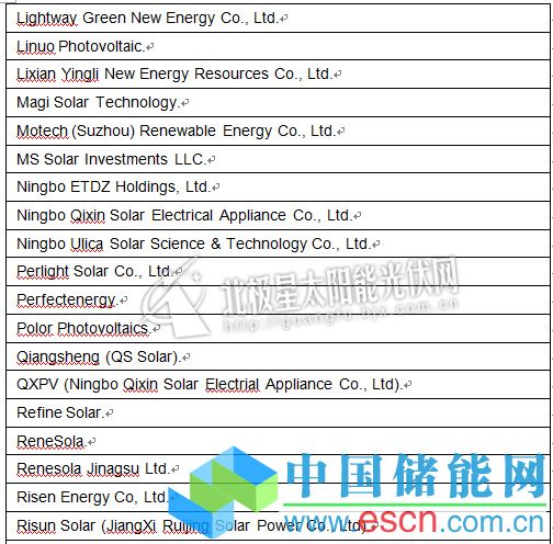美對(duì)華光伏反補(bǔ)貼問卷企業(yè)公示(名單)