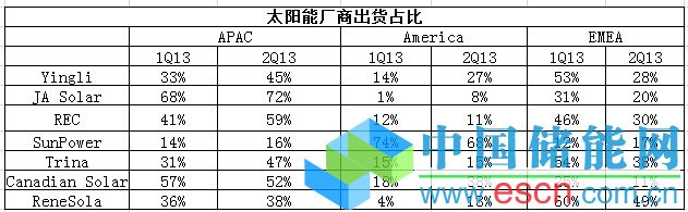中國儲能網(wǎng)訊:受到中歐貿(mào)易紛爭以及亞洲市場崛起的影響,太陽能廠商在1H13紛紛重新啟動企業(yè)策略布局。全球市場研究機(jī)構(gòu)TrendForce旗下新能源事業(yè)處EnergyTrend針對上半年各太陽能廠出貨及營收調(diào)查顯示,中國大廠明顯降低歐洲出貨占比,將重心轉(zhuǎn)向中國內(nèi)需市場以及日本等其他亞洲市場。