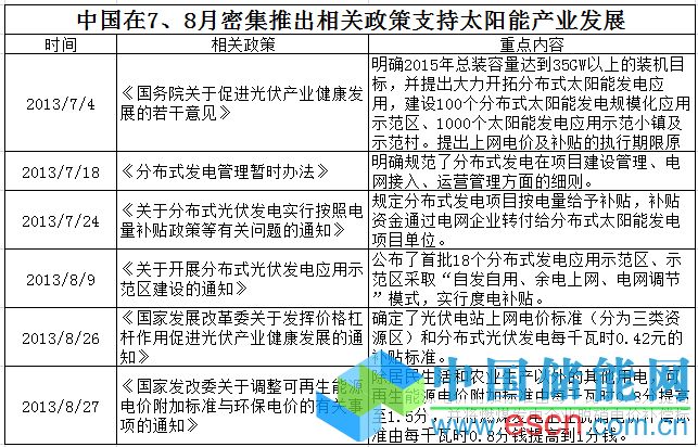 EnergyTrend表示,先前中歐兩方貿(mào)易戰(zhàn)消息眾說紛紜之時(shí),中國政府為協(xié)助太陽能企業(yè)發(fā)展,在7、8月積極推出支援太陽能發(fā)展相關(guān)政策,力圖推動中國市場需求以消化廠商產(chǎn)能。整體來看,2013到2015年可能以6、10、12GW的安裝量,分階段沖刺2015年前總安裝量35GW的目標(biāo),此外也頒布光伏電站上網(wǎng)電價(jià)標(biāo)準(zhǔn)和分布式光伏發(fā)電每千瓦時(shí)0.42元的補(bǔ)貼標(biāo)準(zhǔn),并宣示加強(qiáng)抑制太陽能產(chǎn)能盲目擴(kuò)張,顯示中國政府加大力道調(diào)整太陽能產(chǎn)業(yè)結(jié)構(gòu)。EnergyTrend認(rèn)為,第四季太陽能市場主要會由中、日、美等市場主導(dǎo),而中國又是其中最具發(fā)展?jié)摿Φ氖袌觯袊袌龅淖兓瘜縿又袊鄶?shù)太陽能企業(yè)走向,進(jìn)而影響全球太陽能產(chǎn)業(yè)發(fā)展。