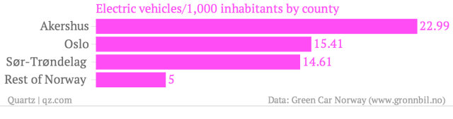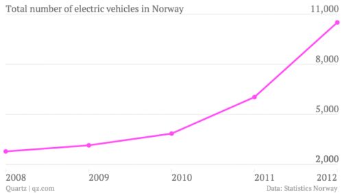 但是,挪威在2012年的電動汽車銷量占該國汽車總銷量的3%,而在美國這一數(shù)字則僅為0.1%??梢?,挪威的電動汽車數(shù)量雖然并不出奇,但人均占有量是十分之高的,甚至是歐洲最高的國家。