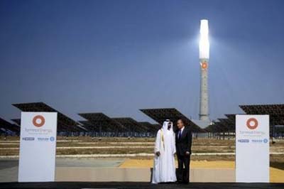 阿布達(dá)比酋長國王儲(chǔ)(左)和西班牙國王卡洛斯一世在去年的發(fā)電站開幕式上