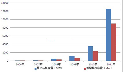 圖表1:2006-2011年意大利光伏裝機情況(單位:MW)