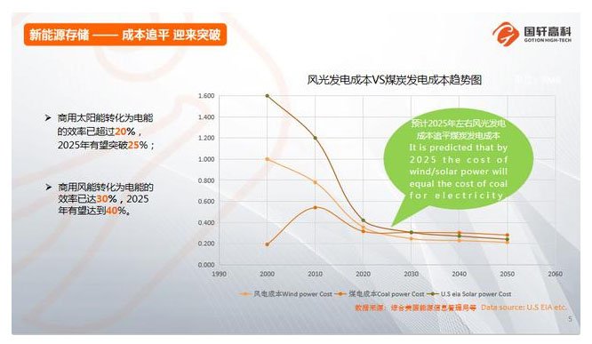 第二張圖是一個趨勢圖,我們在國外網(wǎng)站上摘取的,現(xiàn)在風電和太陽在2020年左右,不僅有它再生優(yōu)勢,它的成本,化石、煤電等方面有優(yōu)勢。說到太陽能,在一些日光充足的地方做過一些研究。上面引用了丘吉爾的話,這是習總書記的話,直面我們最大的挑戰(zhàn)。