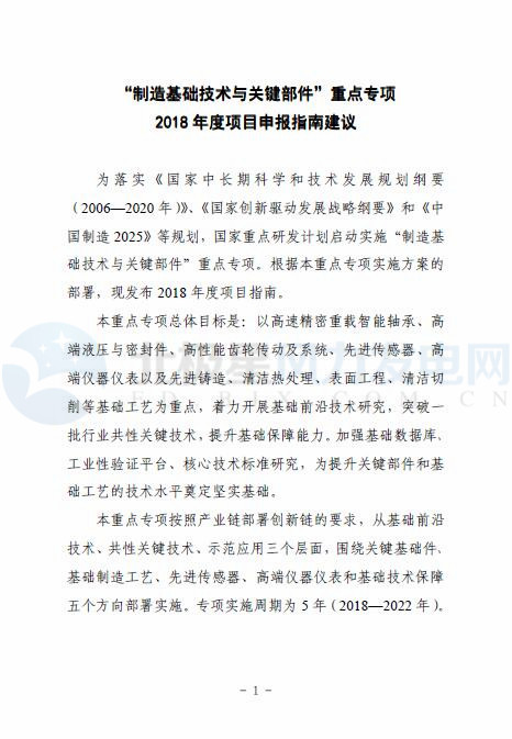 附件4:“制造基礎技術(shù)與關鍵部件”重點專項2018年度項目申報指南建議(部分節(jié)選)