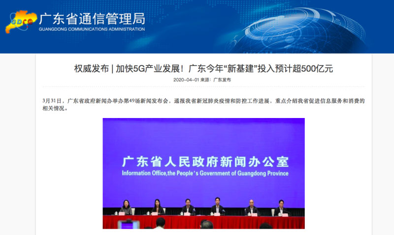 中國儲(chǔ)能網(wǎng)訊:在近日廣東省政府新聞辦舉辦的第49場(chǎng)新聞發(fā)布會(huì)上,廣東省工業(yè)和信息化廳副廳長楊鵬飛透露,目前,廣東正加快發(fā)展以5G為代表的新一代信息技術(shù)和新型信息基礎(chǔ)設(shè)施,2020年力爭(zhēng)新建6萬座5G基站;進(jìn)一步完善鄉(xiāng)村信息基礎(chǔ)設(shè)施,推動(dòng)個(gè)人、家庭、中小企業(yè)等網(wǎng)絡(luò)提速提質(zhì)降費(fèi),打好信息服務(wù)和消費(fèi)網(wǎng)絡(luò)基礎(chǔ);預(yù)計(jì)2020年廣東以5G和數(shù)據(jù)中心為代表的新型信息基礎(chǔ)設(shè)施投資將超過500億元。