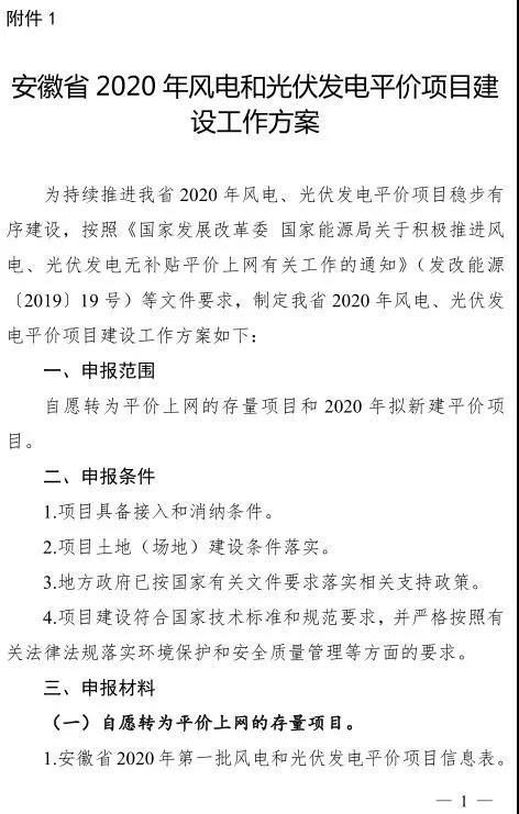 附件下載:附件1.安徽省2020年風電和光伏發(fā)電平價項目建設(shè)工作方案.doc